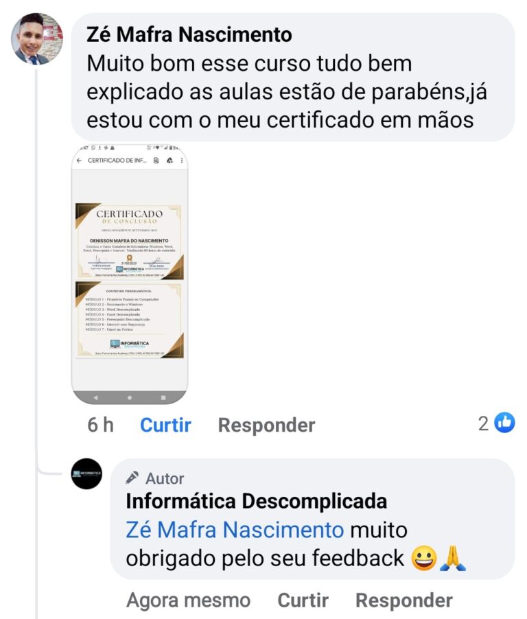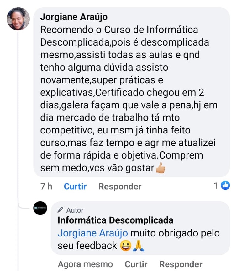 O Curso Informática Descomplicada conta com uma garantia de 100% de satisfação.